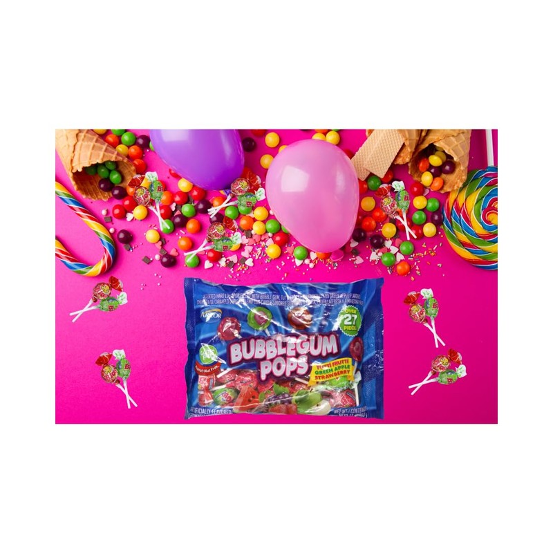 2 Pack Bundle Sucker Pops Crunchy Candy Outside Chewy Bubble Gum Inside Tutti Fruity Green Apple Strawberry Flavors 28 ct. Gift Treat Party Celebration Stuffers