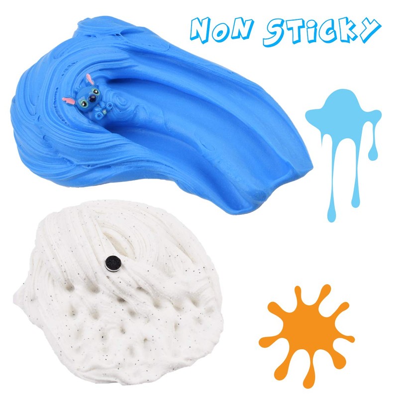- ❤ Kids Friendly Slime(100ML Each*2) – White and blue putty slime comes with cute charms, within good butter scents. It’s an easy to clean and safe candy sludge toy for boys and girls. ASTM certified, recommend for age 5+, smaller kids use under adult supervision.