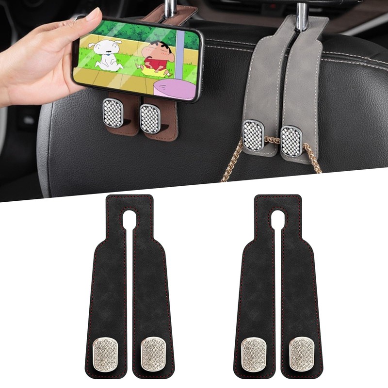 • Car Seat Back Double Hooks:Say goodbye to cluttered car seats! Our leather car seat back double hook and mobile phone holder keeps your belongings within reach, while providing a touch of elegance.