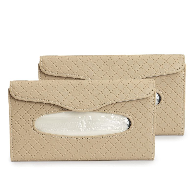 2 Pack Car Visor Tissue Holder - Sun Visor Napkin Holder Backseat Tissue Case, Premium Leather Tissue Box Car Tissue Holder for Car Sun Visor & Seat Back (Beige)