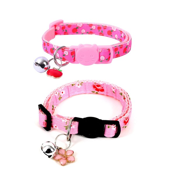2 Pack Cat Collars Adjustable Kitten Collars with Bells Safe Quick Release Buckle Cat Collars Fruit Style Cat Collar Adjustable 19-30cm