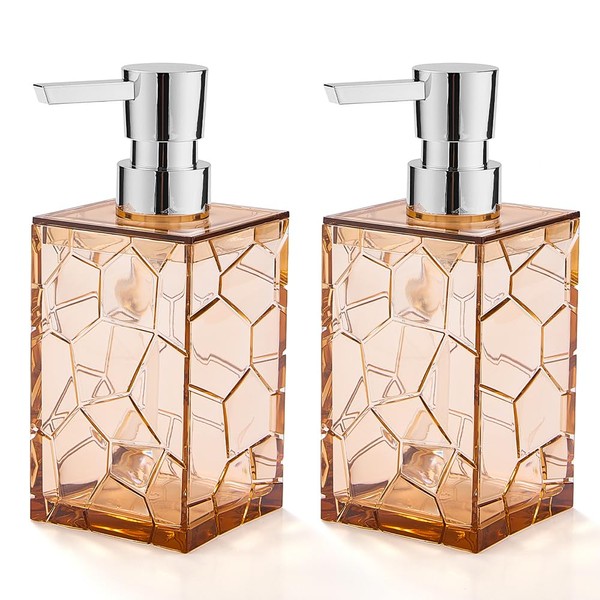 2 Pack Clear Brown Rust Proof Soap Dispenser, Acrylic Plastic Hand Soap Lotion Dispenser Set for Bathroom&Kitchen