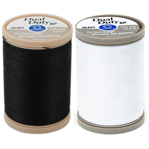 2-PACK - Coats & Clark - Dual Duty XP Heavy Weight Thread (Black + White) 125yds Each