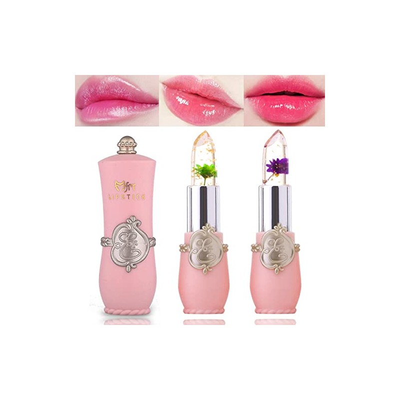 2 Pack Crystal Flower Jelly Lipstick,Magic Color Changing Lipstick,PH Clear Temperature Color Changing Lip Gloss,Lip Balm,Long Lasting Nourishing Moisturizing Lip Stick Set(Set C)