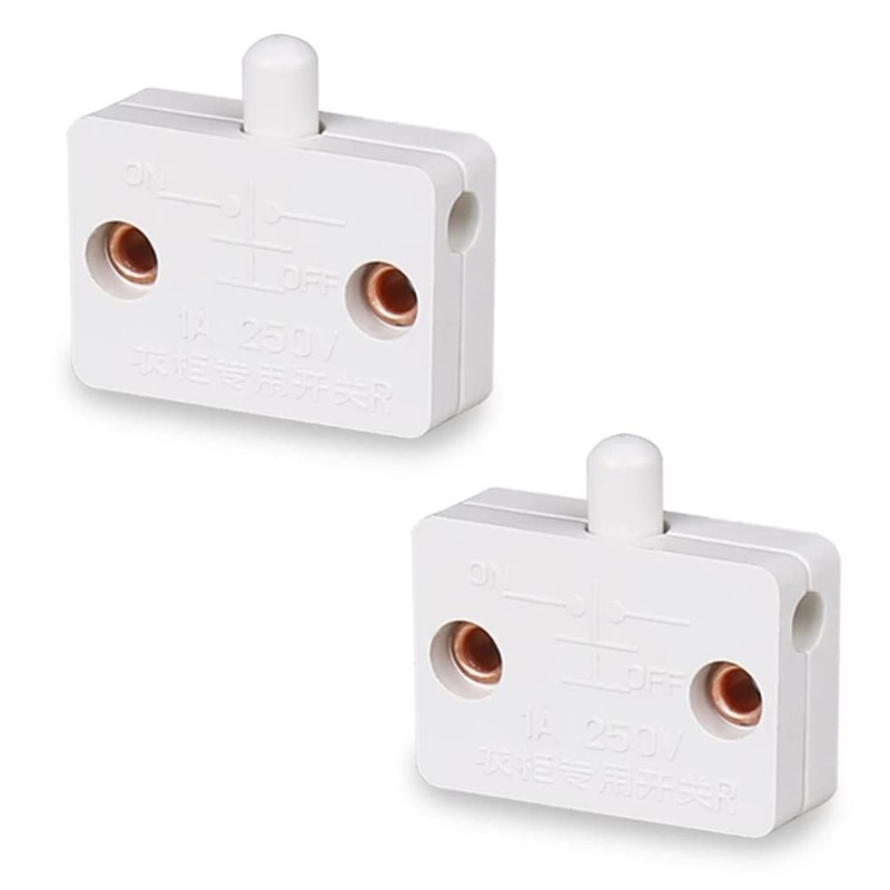 2 Pack Cupboard Door Switch 1A 250V Cupboard Light Control Switch Cupboard Auto Control Switch Push to Break Light Switch for All Kinds of Cabinet Doors (white)