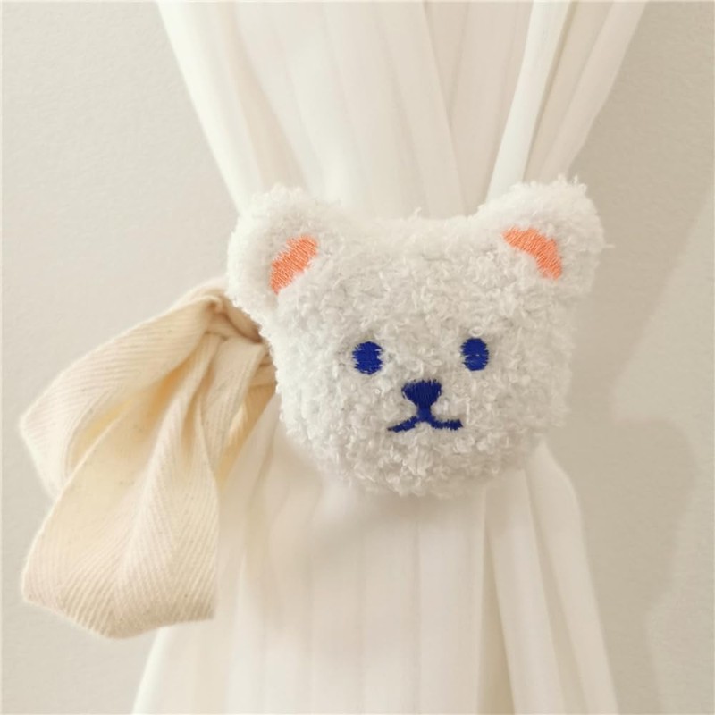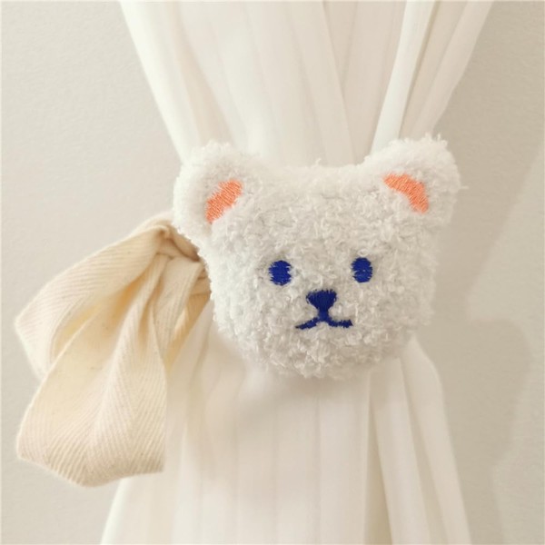 2 Pack Curtain Tiebacks, Plush Bear Decorative Rope Curtain Ties, Curtain Holder Holdbacks, Window Treatment (White)