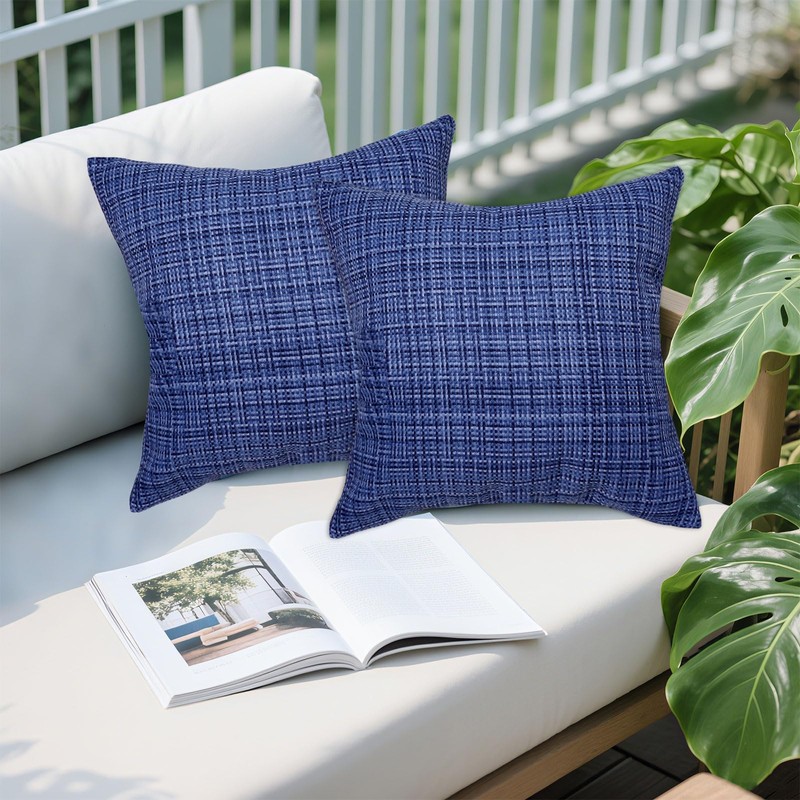 2 Pack Decorative Outdoor Waterproof Throw Pillow Covers ONLY Square Garden Cushion Cases for Patio, Couch, Tent and Sofa, 18 x 18 Inches (Navy Blue, 18" x 18")