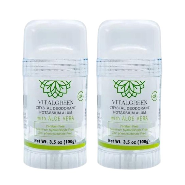 2 Pack Desodorante Cristal Alumbre Con Aloe Vera 100g Vital Green