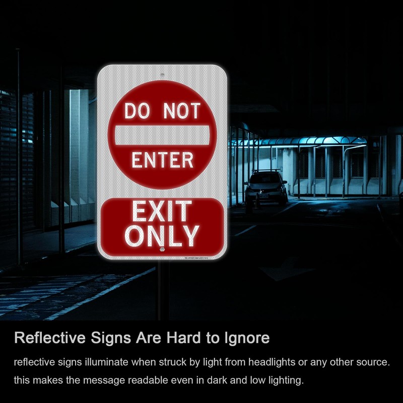 - Engineering Grade Aluminum: Do Not Enter Exit Only Sign is made of heavy-duty aluminum and reflective film, 120 mil thickness rust-proof aluminum sign can withstand harsh weather without fading.