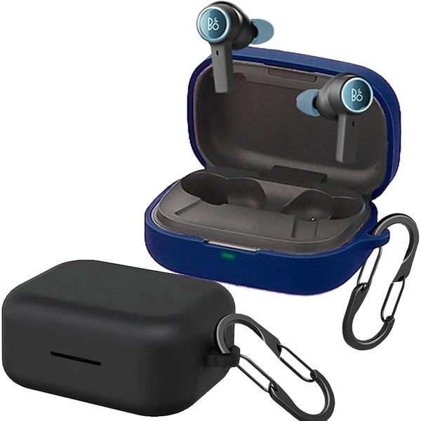 [2 Pack] easyBee Case Compatible with Beoplay EX Earbuds Charging Cover, with 2 Keychain and 2 Anti-Lost Strap, Soft Liquid Silicone Ultra Thin Shockproof Protective Kit - Black Blue