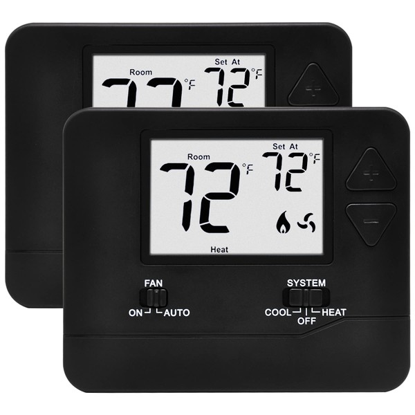 ELECTECK 2 Pack Non-Programmable Digital Thermostat for Home, up to 1 Heat/1 Cool with Large LCD Display, Compatible with Single Stage Electrical and Gas/Oil System, Black