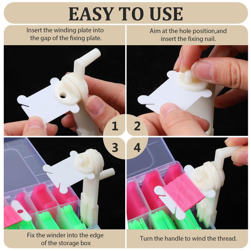 - Multi-Functional Embroidery Thread Organizer: Includes 1 manual winder + 5 color-coded bobbin boards (60 bobbins/color) + 2 numbered stickers, compatible with DMC threads for cross stitch floss organizer projects and DIY crafts.