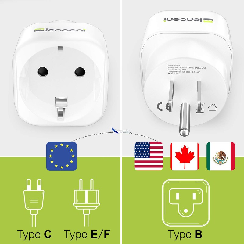 - Perfect for devices from foreign country - Convert Plug from Europe (2 round pin) to USA (flat pin). Compatible with smartphones, laptops, shaver, lights, hair dryer, straightener, curlers, toothbrush, curling iron and more. Ideal for electronics from abroad or hosting foreign friends at home. Attention: This product is plug converter, not voltage converter. Please check your devices before use make sure they support 110V-240V dual-range input, otherwise you may need a voltage converter.