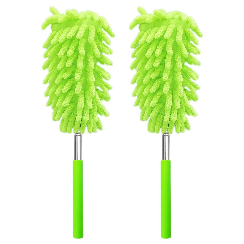 2 Pack Extendable Microfiber Feather Duster for Cleaning, Washable Dusters, Up to 30 Inch Reachable, Wet and Dry Use Cleaning Tools for Car, Ceiling Fan, Window, Furniture, Office