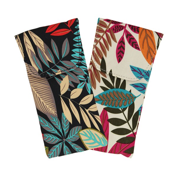 - PERFECT FOR MEDIUM TO LARGE FRAMES. 2 Pack soft fabric eyeglass case provides the protection of a hard case without the bulk. Colorful botanical pattern on black and cream background, stores your glasses in style