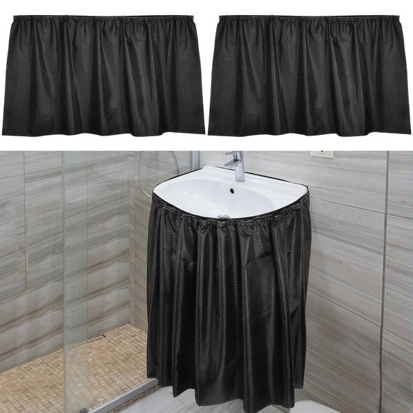 2 Pack Fabric Sink Skirt Diamond Bathroom Stitch Under Sink Skirt with Self Stick Adhesive Waterproof Fabric Under Sink Curtain Skirt for Extra Storage,Kitchen Sink Cover (Black,55 x 32Inch)