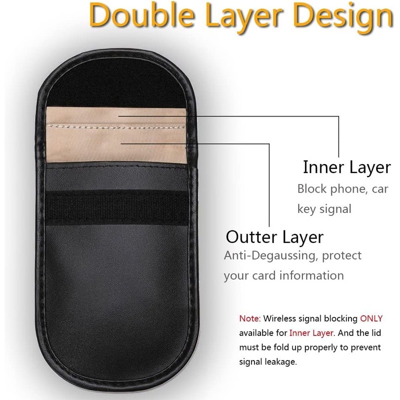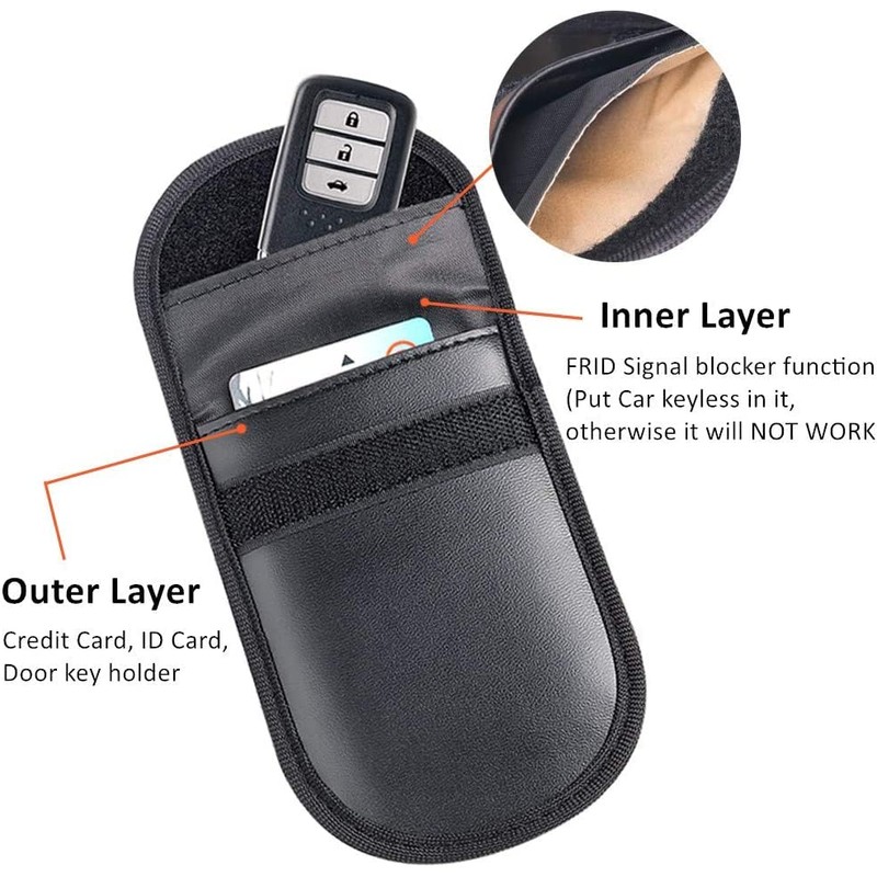 • SECURE YOUR CAR - Simply place the car key fob into the Car Key Signal Blocker and you're protected. This Faraday case will protect your belongings from EMF, RFID, and other hacking signals! No worry about thieves amplifying your fob signal and opening car any more, effectively stop your keyless entry fobs from being remotely accessed.