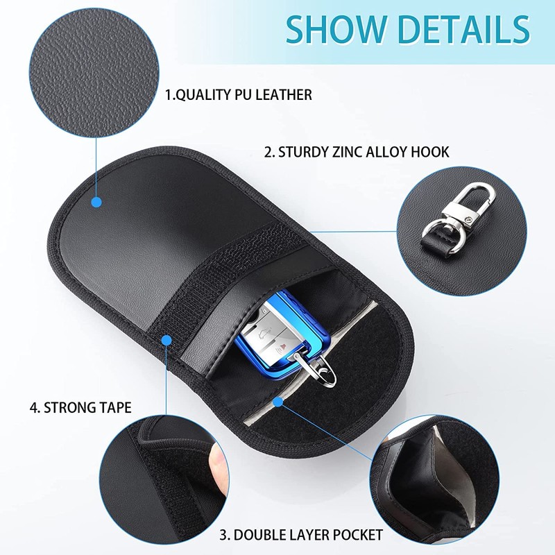 • HIGH QUALITY - Our faraday pouch uses an upgraded zinc alloy hook that can perfectly match your jeans or a backpack, and the key ring inside can ensure easier removal of car keys. It better ensures that the keyless car key signal blocker pouch can still work normally after long-term use.