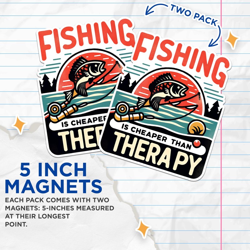 (2 Pack) Fishing is Cheaper Than Therapy Magnets - Funny Fishing Quote Magnets - Humorous Fish Art Magnets- 5" On Longest Side - for Fridges, Toolboxes, Cars - Made in USA - MAG2633