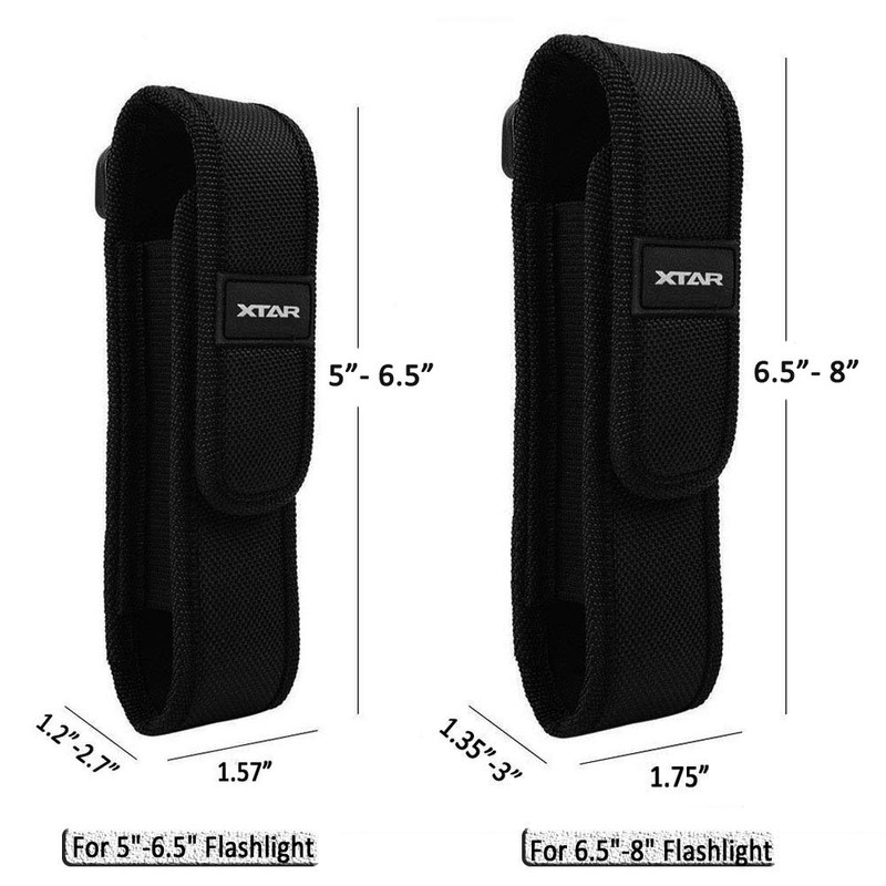 - Upgraded version, have solved the sewing issue. Constructed by durable nylon material. One item includes 2 flashlight holsters, one for 5.9"-6.4" flashlight, another for 7.8"-8.2" flashlight.