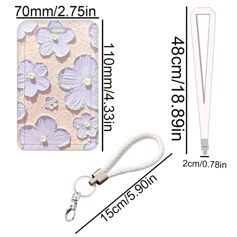 2 Pack Floral Slide Card Holder Card Holder Slide Plastic Badge Holder Floral Painted Flower Card Holder with Lanyard or Keychain