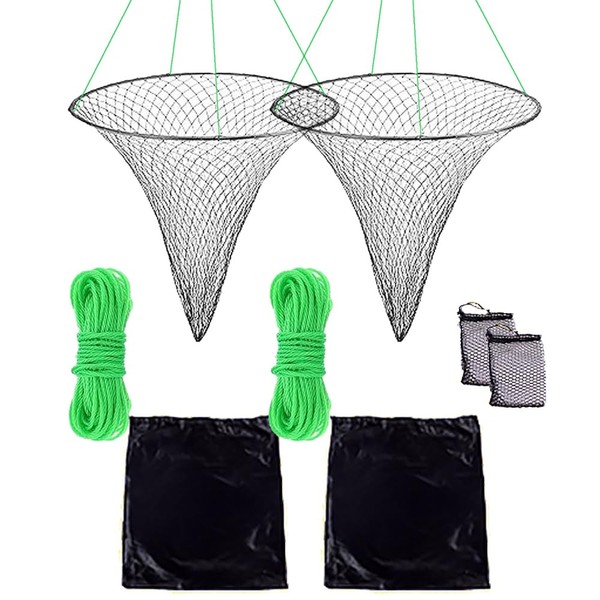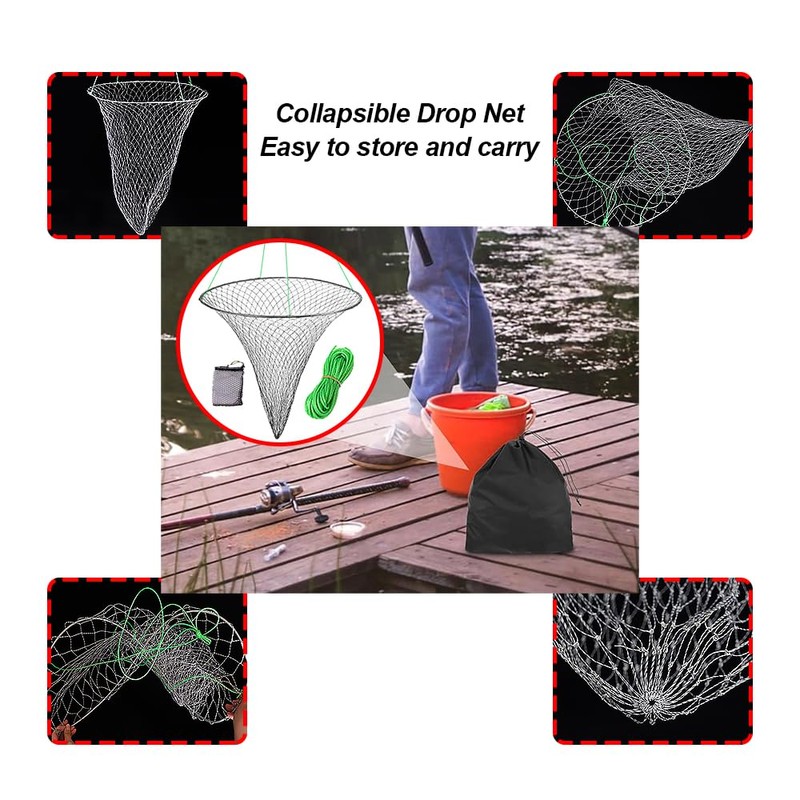 Packing list: 2-Pack Foldable Fishing Drop Nets, Comes with Storage Bag & Bait Bag.