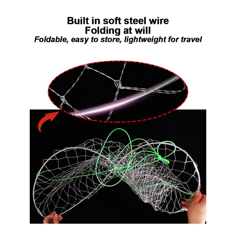 - 【Smart Collapsible Steel Frame】 Flexible stainless steel hoops fold to compact in seconds - includes carrying bag for effortless portability to any fishing spot.