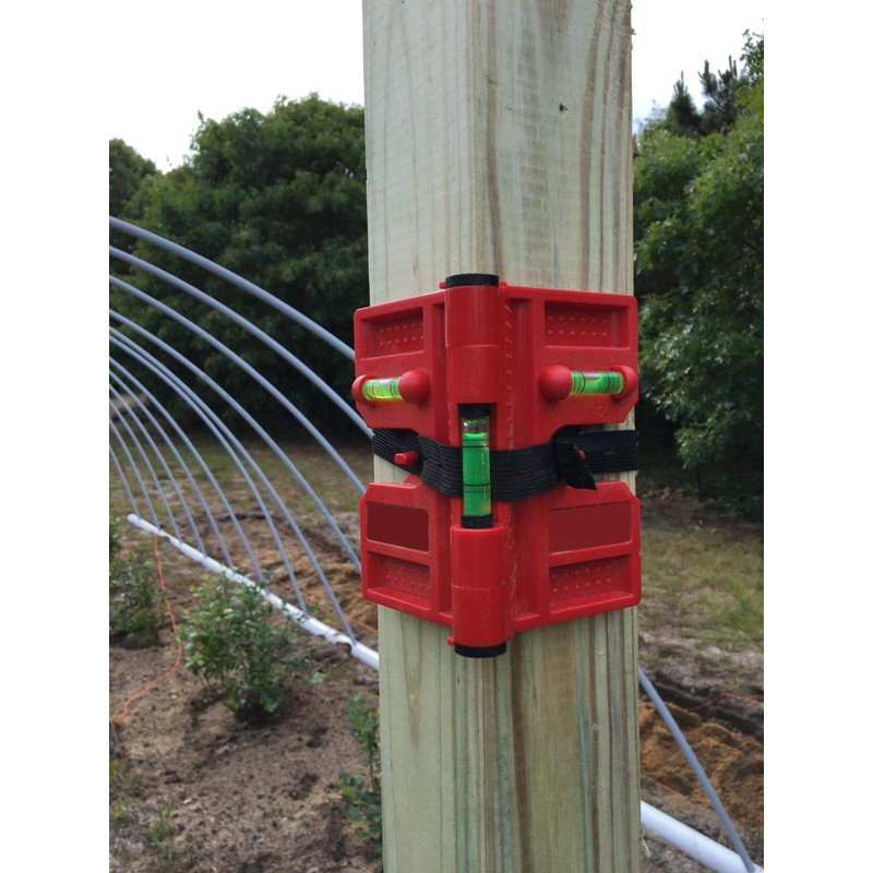 The level folds closed, opens flat, and locks every 15° to accommodate different pipe, post, and beam sizes to 6" in diameter.