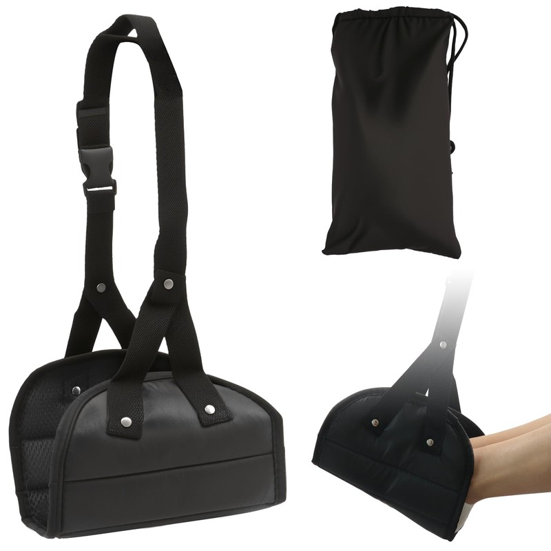 - Product Features: The adjustable straps let you customize height and tightness. Easy to install by hanging on the front seat in a plane or a desk leg in an office. It serves as a comfortable foot sling for airplane travel, relieving fatigue, acting as a great adjustable and comfortable foot hammock.