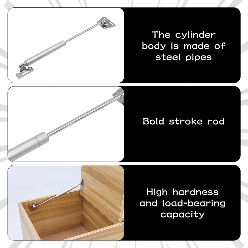 The sop piston gas strut hinge a silent design, with meticulous attention to detail in every component, ensuring zero friction noise during use. The pneumatic lift strut is suitable for kitchen cabinets, toy boxes, folding tables, storage boxes, wardrobes, and more, meeting both home and office needs.