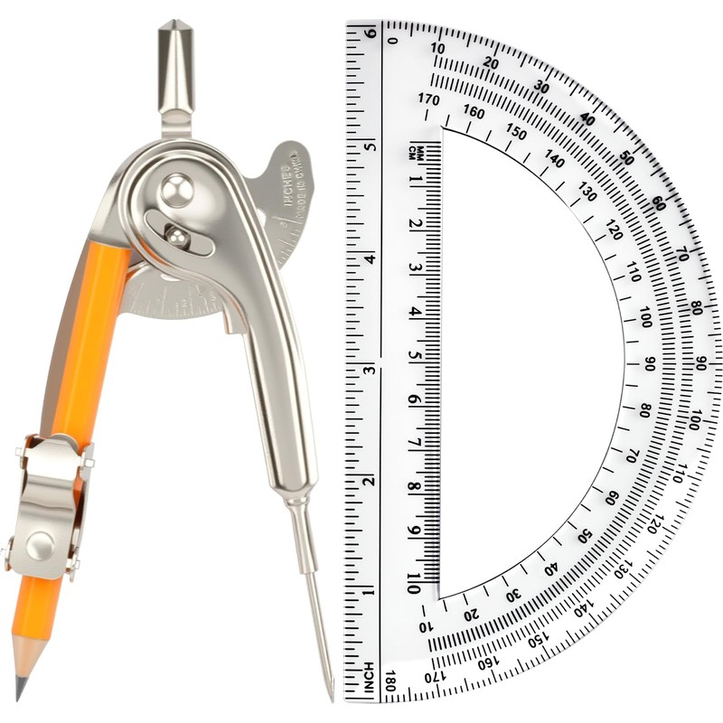 - Appropriate Size: each metal compass is 5.1 inches long and can draw a circle with a diameter of up to 11 inches, or various circles can be drawn as needed; The plastic protractor has a diameter of 6 inches and a range of 0-180 degrees; These math compass and protractor set are ideal for school projects, mathematical geometry, and artistic architectural drawing, helping you quickly complete your work
