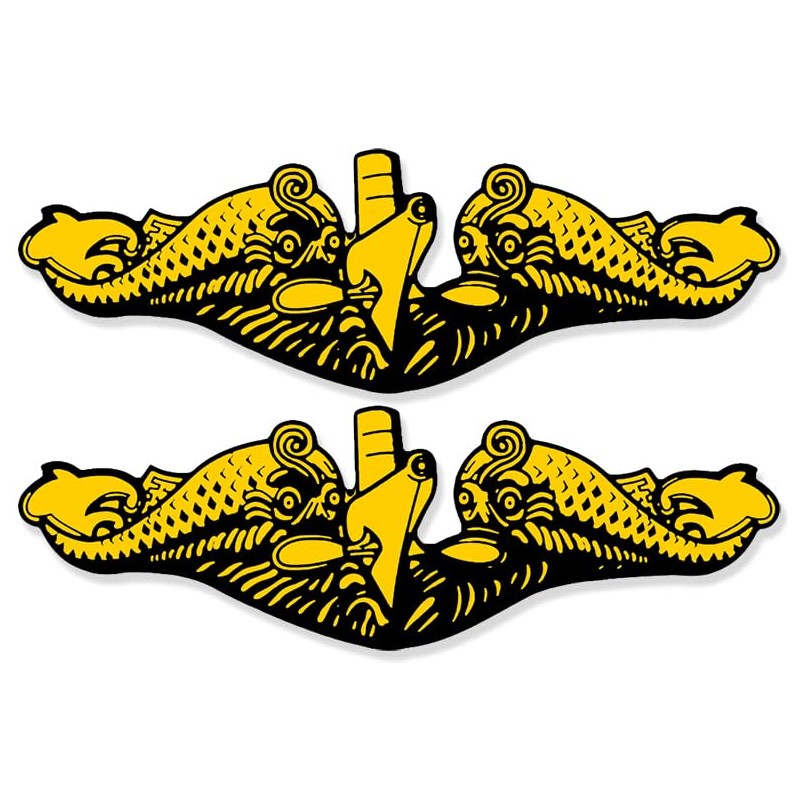 2-Pack: Gold Officer Submarine Dolphins Shaped Sticker (Navy Naval Logo Insignia sub Warfare Vinyl Decal for car Truck or Laptop (1 x 3 inch) USN Licensed
