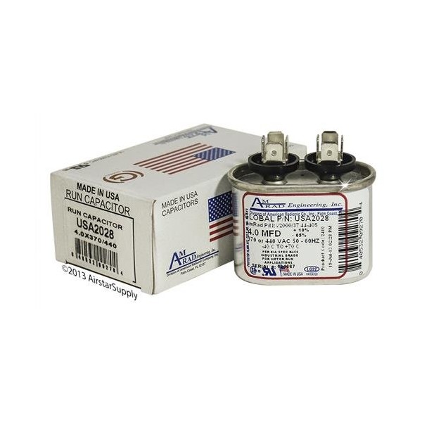(2) Pack - Goodman CAP040000370VAS - 4 uf / Mfd 370 / 440 VAC AmRad Replacement Oval Universal Capacitor - Made in the U.S.A.