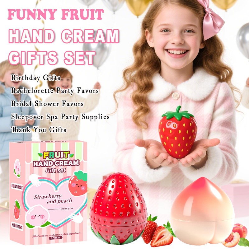 2 Pack Hand Cream Gifts Set, Gifts for Women, Birthday Gift for Her, Bridesmaid Gifts, Thank You Gifts, Teacher Appreciation Gifts, Moisturizing Hand Lotion for Dry Cracked Hands (Peach+Strawberry)