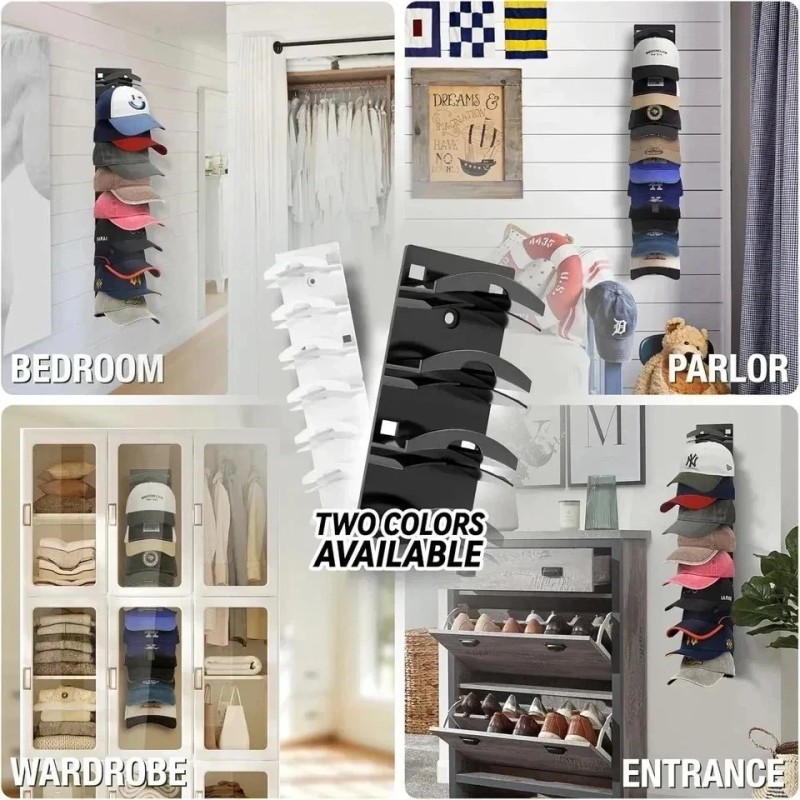 • 1. 2PCS Wall-Mounted Hat Organizer Rack – Holds up to 20 Baseball Caps (Black)