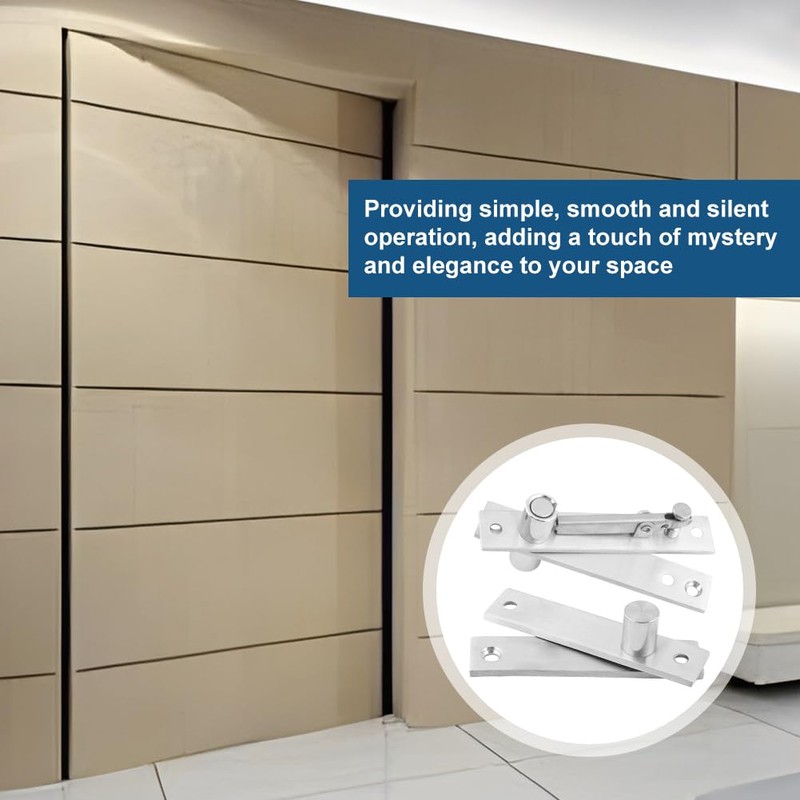 - 【Stainless Steel Hidden Door Hinge】The pivot hinges are made of high-quality stainless steel, silver polished, smooth surface, will not hurt your hands, srong enough to stably support heavy and wide doors, not easy to deform or break, wear-resistant, long service life.