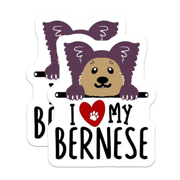 (2 Pack) I Love My Bernese Stickers - Dog Lover Decal - Cute Dog Paw Print Stickers - 5" On Longest Side - Sticks to Smooth Flat Surfaces - Made in USA - BMCS4300