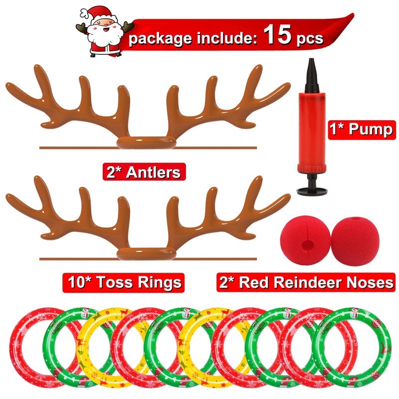 - Inflatable Reindeer Antler Games: This inflatable antler toy is light and portable, you can have fun with this party ring toss games for many occasions. Christmas Party, family gathering, birthday party, school activities, camping, traveling, etc.