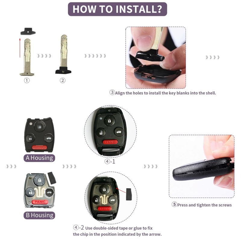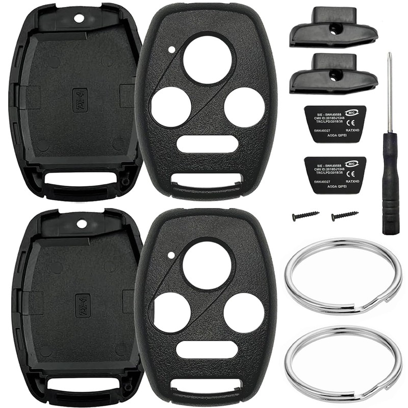 2 Pack Key Fob Shell Replacement for Honda Accord 2003-2012 / Civic EX 2006-2013 / Pilot 2009-2015 / CR-V 2005-2006 4 Button Car Keyless Entry Remote Control Key Fob Case Cover - NO Cutting Require