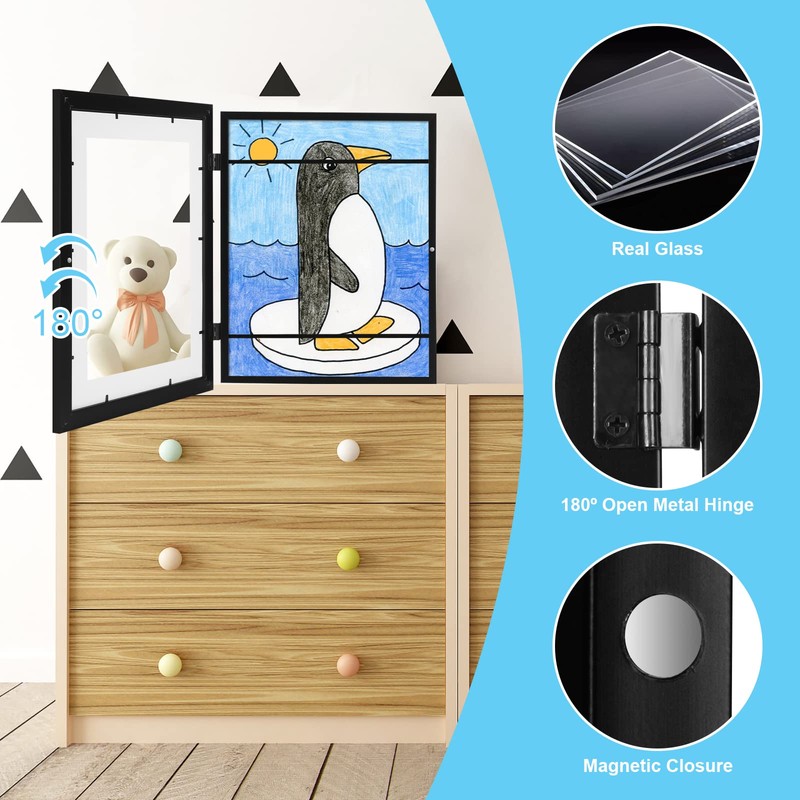 - 【Excellent Quality】Our kids art frames is made with high-quality, eco-friendly materials and features crystal-clear glass that offers a stunning and clear visual display of your child's artwork. Our frame adds a touch of elegance and artistic atmosphere to any room, enhancing the beauty of your child's creations.