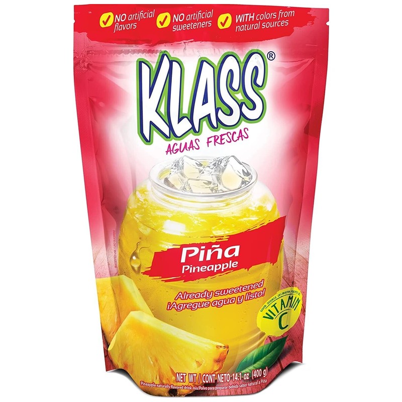 2 PACK KLASS PINEAPPLE (PIÑA ) NO ARTIFICIAL FLAVORS DRINK MIX 14.1 OZ EACH
