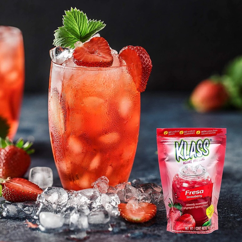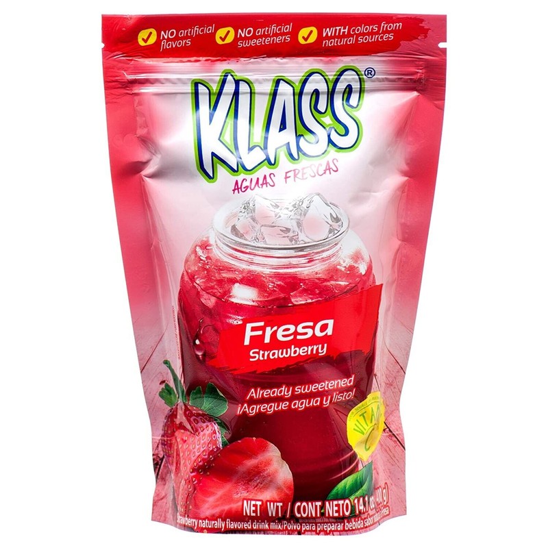 2 PACK KLASS STRAWBERRY( FRESA) NO ARTIFICIAL FLAVORS DRINK MIX 14.1 OZ EACH