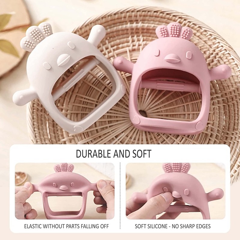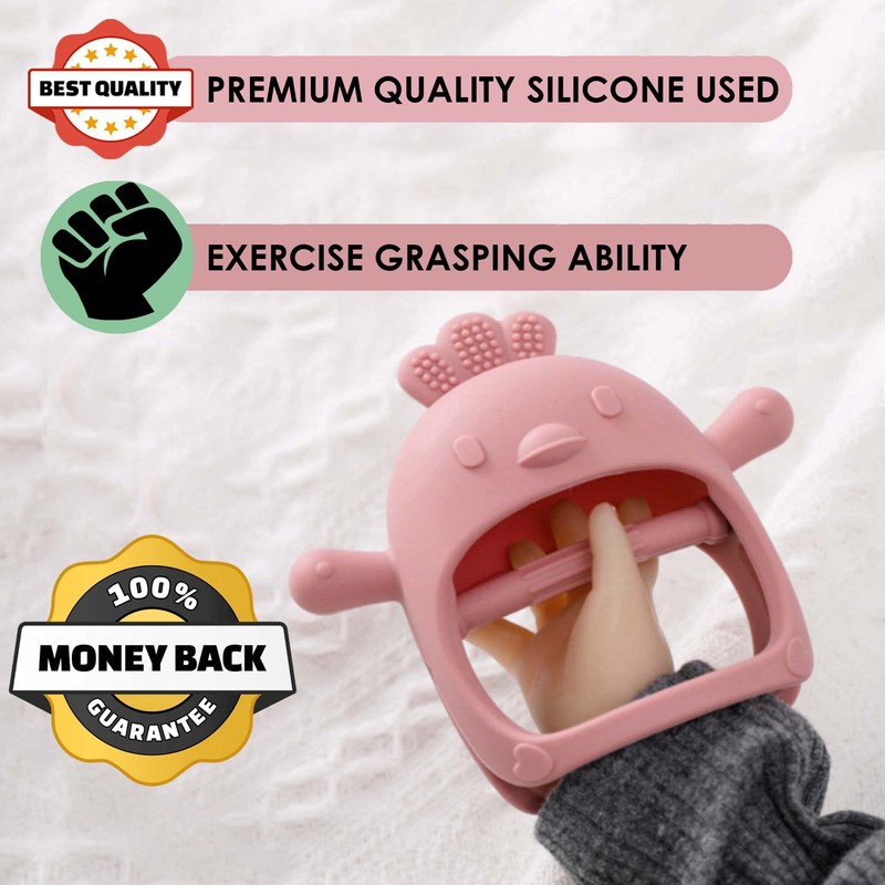 - DEVELOP GRASPING ABILITY: Our silicone baby teether, a fantastic choice among teething toys for babies, serves as both a replacement for finger sucking and chewing, and a tool to enhance your baby's fine-motor skills and grasping ability. This teether also promotes good oral habits while providing soothing teething relief.
