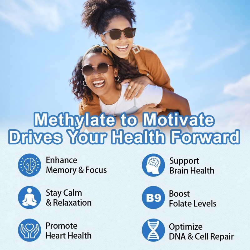 - 【Feed Your Brain, Fuel Your Mood】 Studies show that 30% of people with frequent low moods have folate gene mutations, which reduce the production of methylfolate. This defect can damage hippocampal neurons and affect the synthesis of "happiness". Our methyl folate supplement can help provide a positive mood, promote brain health and cognitive function, which helps to improve learning and memory abilities