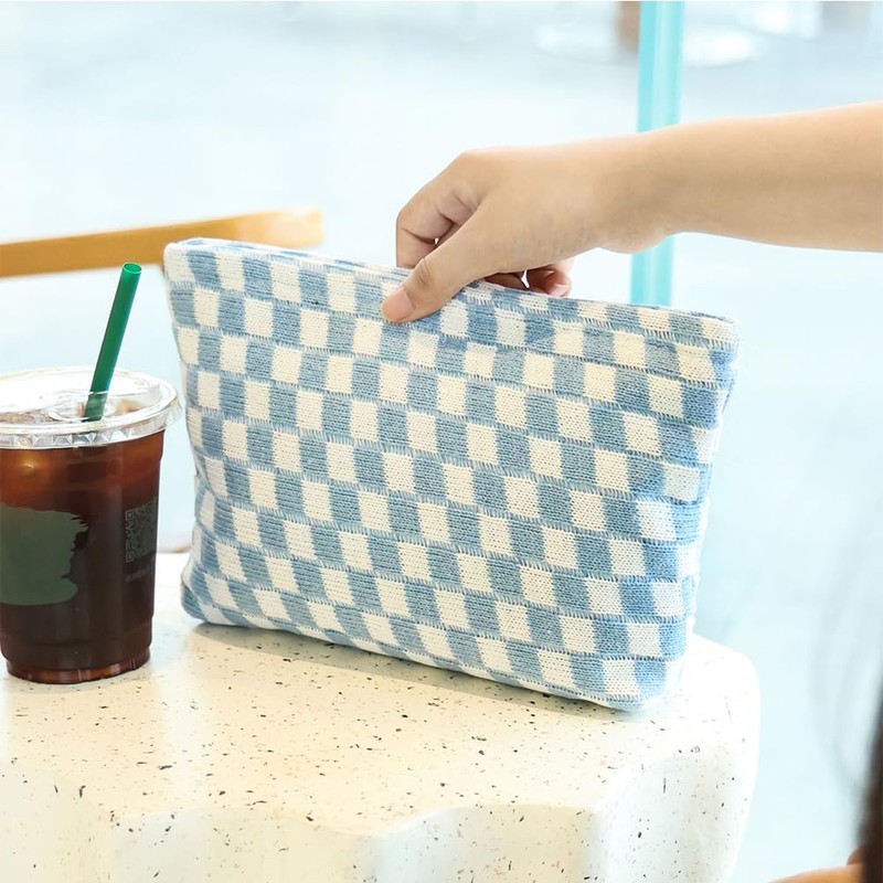 - Stylish Design:This large cosmetic bag features a cute checkerboard nylon print,perfect for adding a touch of elegance to your makeup routine;With ample room for all your cosmetics and toiletries, this makeup organizer pouch ensures you can keep everything neatly organized while travelling