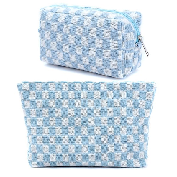 2 Pack Makeup Bags for Women,Large Cosmetic Organizer Pouches,Portable Travel Toiletry Bags Cute Small Brushes Storage Pouch with Zipper for Purse,Checkerboard Light Blue