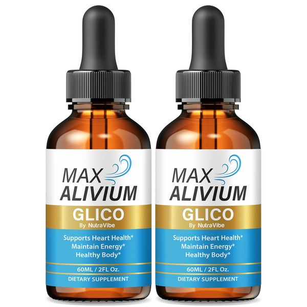 (2 Pack) Max AliviumGlico Drops – Premium Liquid Dropper Formula to Support Natural Flow, Balanced Levels & Circulation | Clean and Natural Gotas, Easy and Convenient for Daily Use (60 Servings)