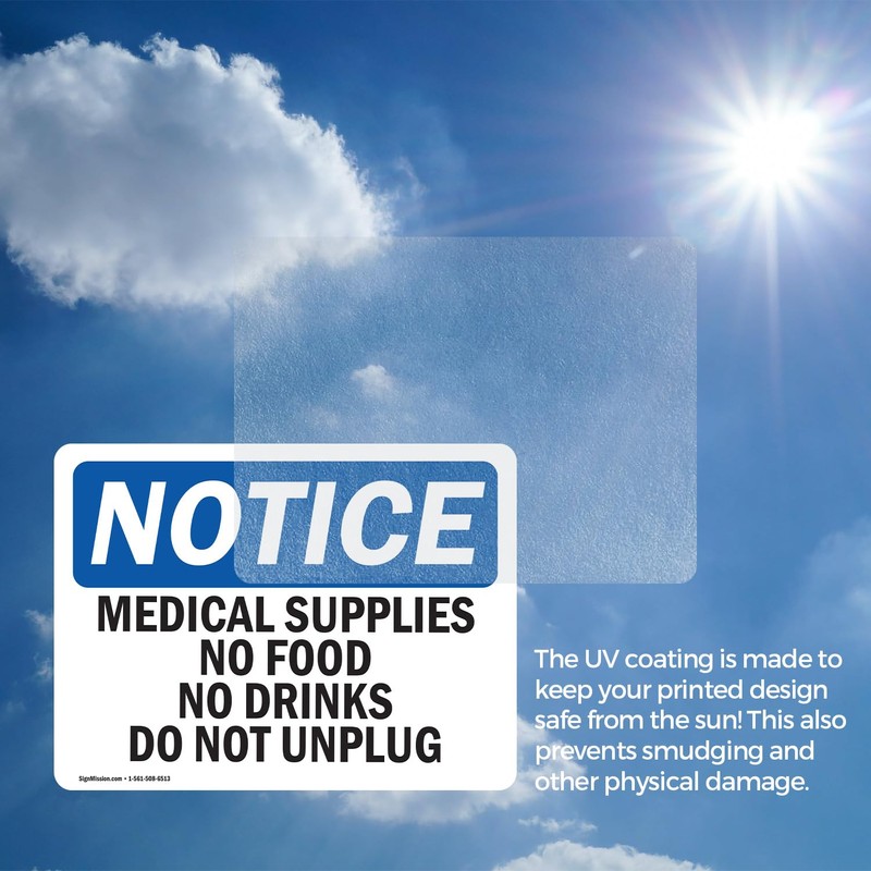 (2 Pack) Medical Supplies No Food Or Drinks Do Not Unplug OSHA Notice Sign 24 Inch X 18 Inch Vinyl Label Decal Sticker Weather Resistant, UV Protected for Workplace, Construction Site, Made in the USA