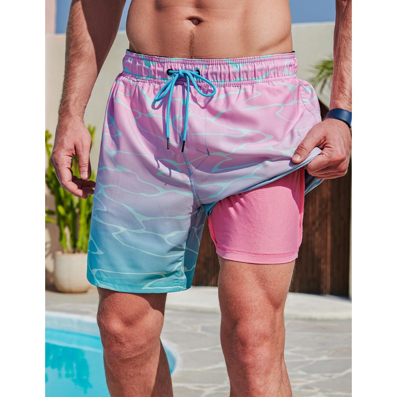 - 2-in-1 Men’s Swim Trunks with Compression Liner: These hybrid swim shorts for men feature a built-in compression boxer brief, acting as supportive underwear to prevent chafing and sticking when soaked in water. Designed with stretchy, breathable, and elastic spandex fabric, this lined swimwear ensures comfort during pool, surf, or vacation activities.