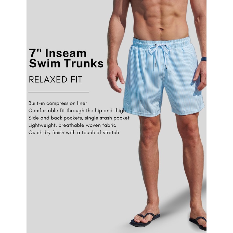 - 7-Inch Inseam: This athletic bathing suit offers a relaxed fit through the hip and thigh with a straight leg, sitting below the waist and hitting above the knee. The modern mens swim trunks 7 inch look is ideal for swimming, surfing, fishing, hiking, or casual vacation clothes.
